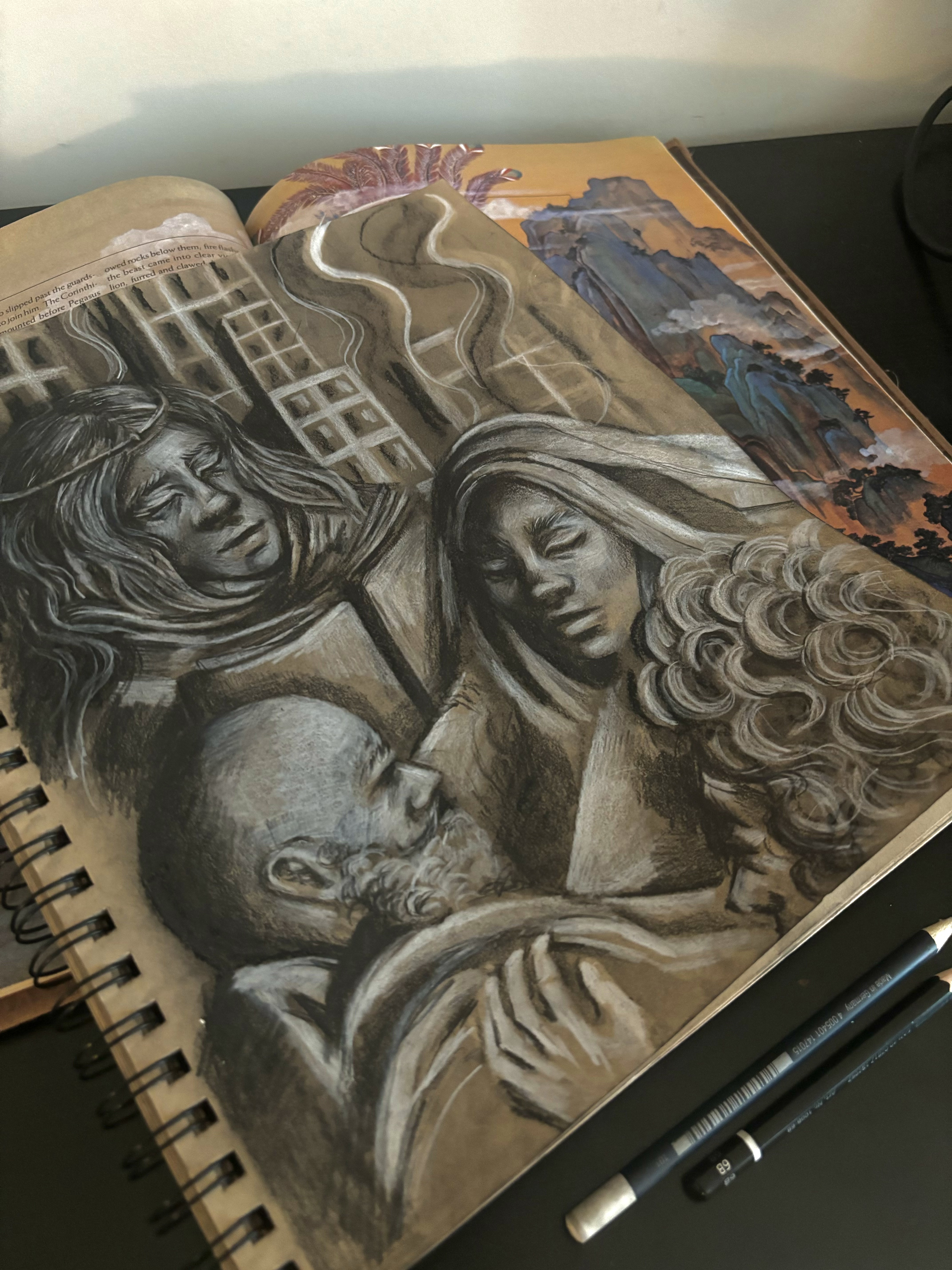 The High Council | 9" x 12" | Charcoal on Paper | 2024