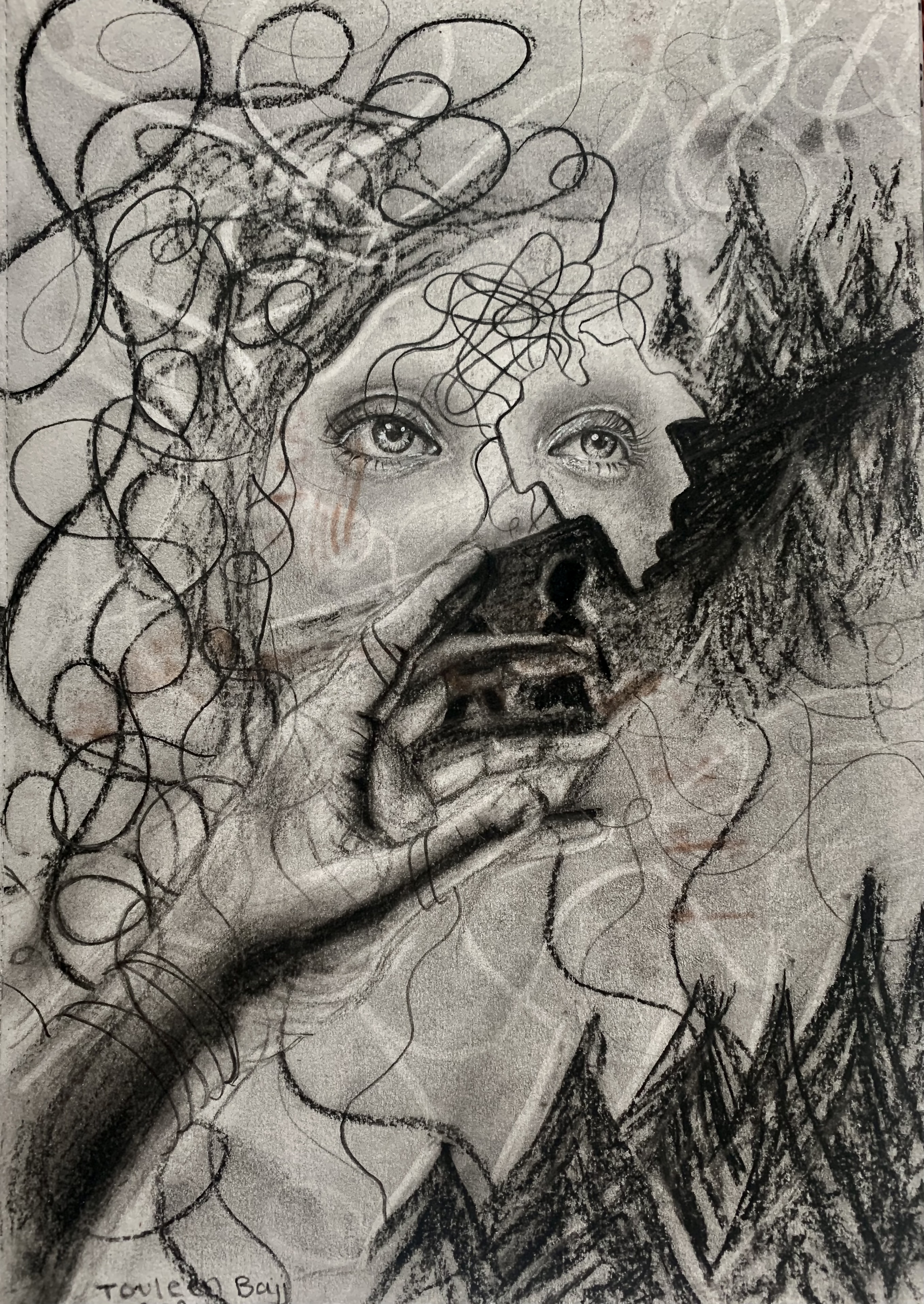 Message from the Moon | 9" x 12" | Charcoal on Paper | 2023