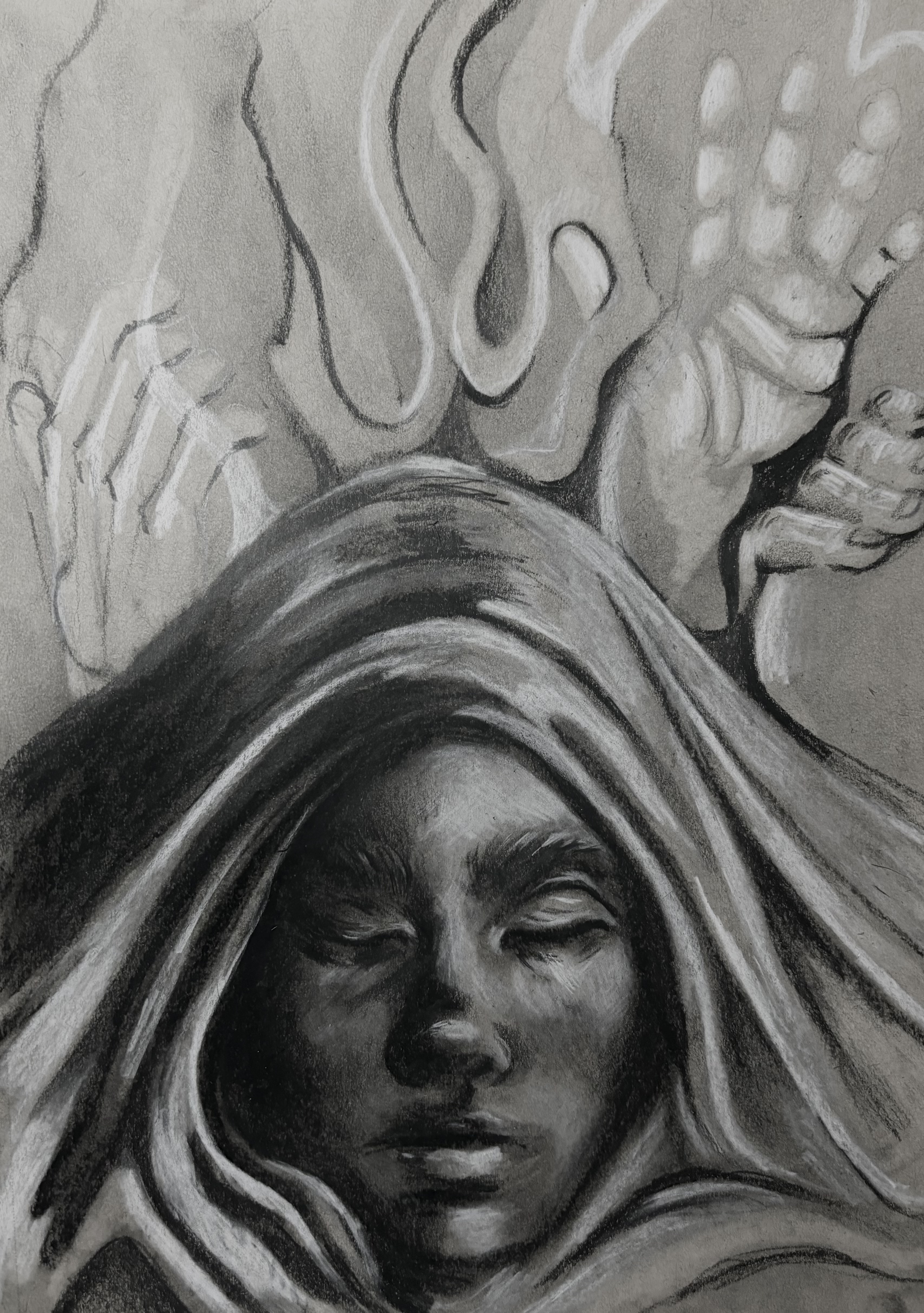 Woman of the Veil | 9" x 12" | Charcoal on Paper | 2024