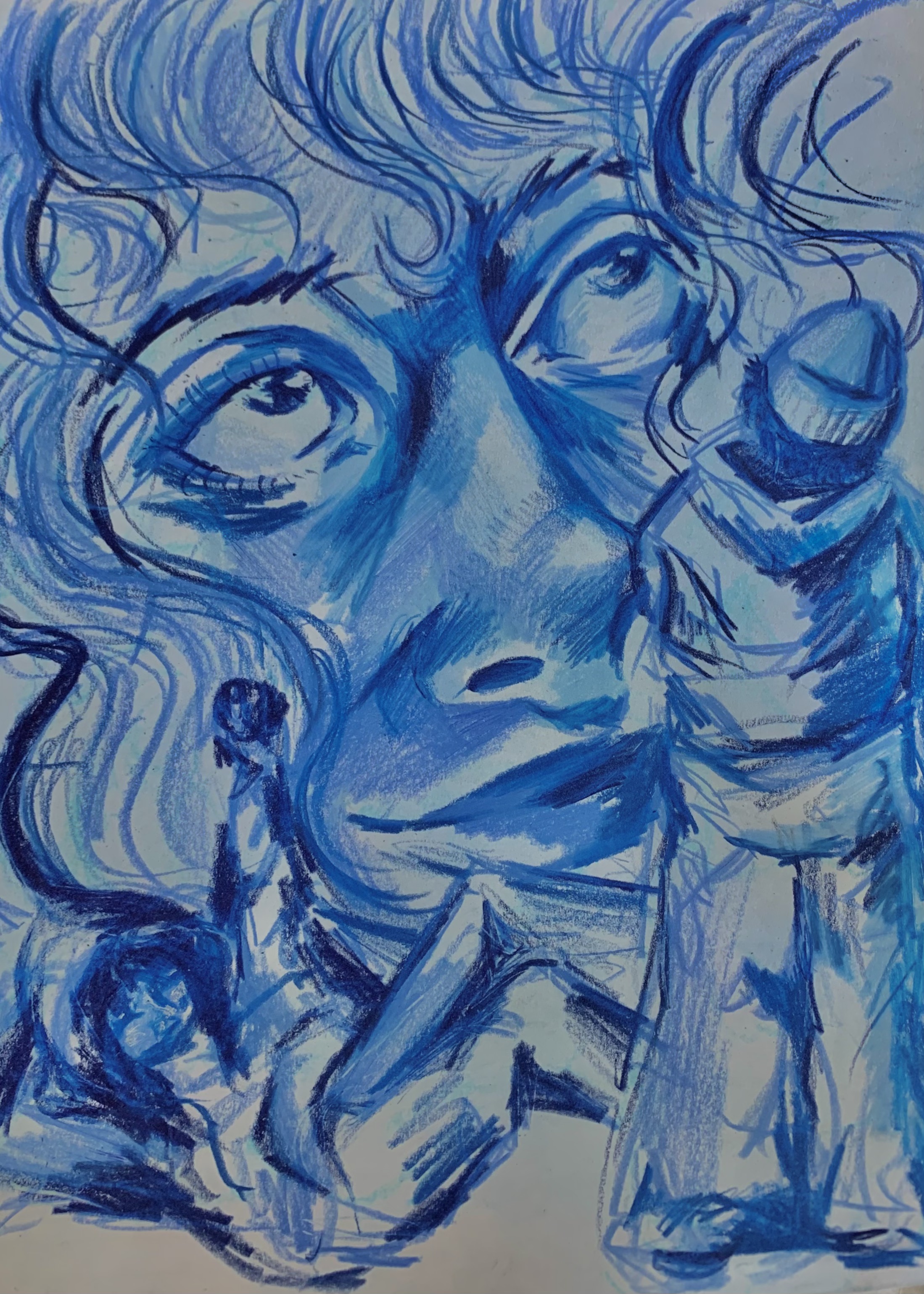 Dr.Manhattan | 9" x 12" | Charcoal on Paper | 2023